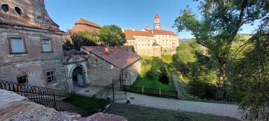Nad miastem góruje zamek. Można dotrzeć do niego trasą spacerową od Rynku Karola lub dojechać autem. Ciekawostką jest, że w ogrodach zamku zamieszkują niedźwiedzie. Gród gotycki został założony w połowie XIII wieku jako obiekt fortyfikacyjny. Do XVIII wieku był poddawany wielu przebudowom. W okresie rządów rodu Piccolominii barokowy styl nadał mu sławny architekt włoski Carlo Lurago. Z zamkowych tarasów jest przepiękny widok na całe miasto. Warto pospacerować po górze zamkowej, aby zobaczyć zagrodę z danielami i muflonami oraz stary wojskowy cmentarz z XIX w. Zwiedzać zamek można codziennie oprócz przełomu listopada i grudnia, Warto sprawdzić na oficjalnej stronie: www.zamek-nachod.cz